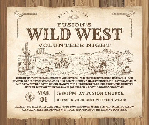 serving—you’re invited to a night of dinner, fun, and a few awards as we celebrate YOU. This is our way of saying thank you for the countless hours, faithful hearts, and